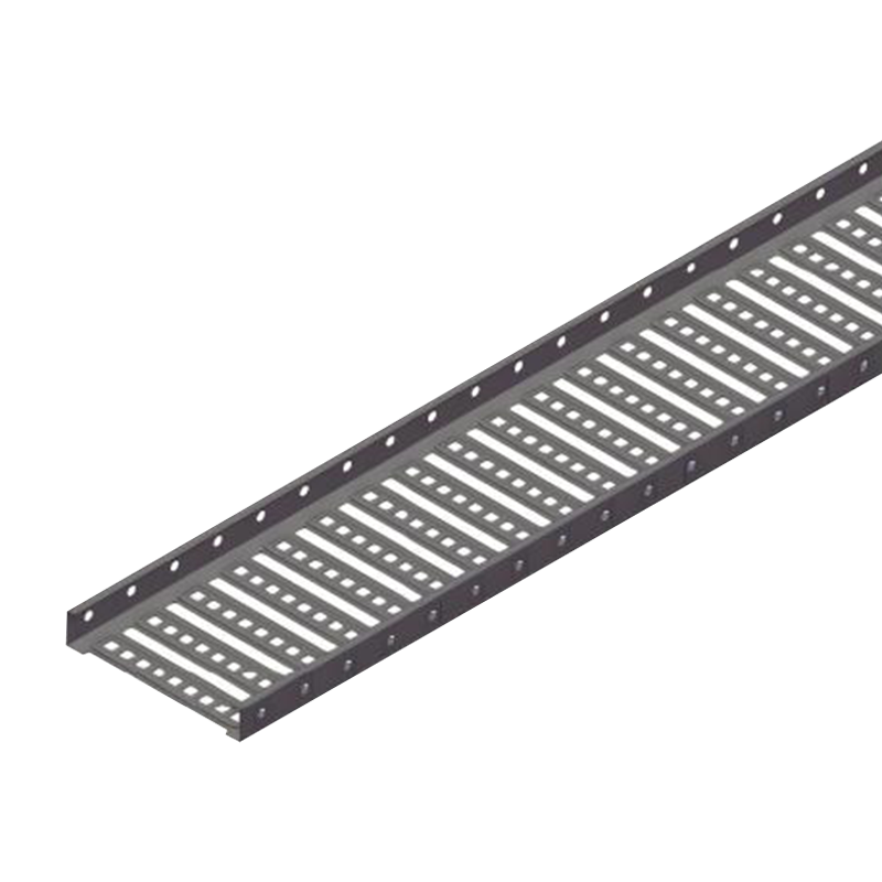 Conservation cable tray straight is made of high-quality cold-rolled steel and aluminum alloy as the main materials. Cold-rolled steel provides a solid support foundation for the bridge with its good mechanical strength and processing performance, ensuring its bearing capacity and durability; while the aluminum alloy material embodies the lightweight design concept, which effectively reduces the weight of the bridge and facilitates transportation and installation. Conservation cable tray straight is equipped with stamped heat dissipation holes at the bottom, with an opening rate of not less than 40%, ensuring smooth air circulation and significantly improving ventilation and heat dissipation performance. Adequate air flow reduces the heat accumulation around the cable, effectively controls the cable temperature, and reduces the energy loss and potential safety hazards caused by high temperature. The design of the side reinforcement ribs enhances the overall rigidity and stability of the bridge and prevents deformation and structural fatigue. The product adopts advanced galvanizing and plastic spraying technology to provide multi-layer protection for the bridge. The galvanized layer not only provides good anti-rust effect, but also enhances the hardness and wear resistance of the bridge surface, and the plastic spraying coating forms a dense protective film.