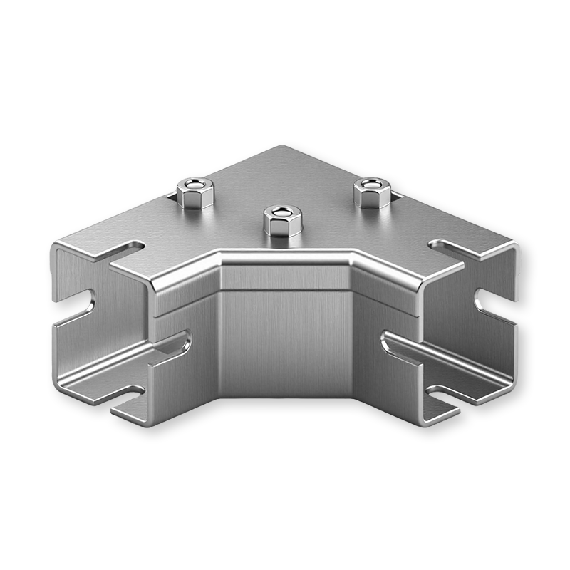 Cable tray horizontal 90 ° elbow is a steering component specially designed for cable tray system. Its main function is to realize 90-degree turn in the horizontal direction during cable laying, ensuring the continuity of cable path and the overall stability of the system. This product adopts U-shaped structure without cover groove, and both sides are designed with fixing holes. When used with corresponding cover plates, it can effectively protect cables and prevent foreign objects from entering. In terms of structural design, the edge fixing holes of cable tray horizontal 90 ° elbow are evenly distributed, which is convenient for bolt connection with straight bridge section to achieve fast and firm assembly. Its inner bending radius is standardized and strictly complies with the industry cable wiring specifications, effectively avoiding excessive extrusion and damage of cables at the bends, and extending the service life of cables. This elbow is mainly made of galvanized steel plate, stainless steel and aluminum alloy. It has a wide range of applications, covering construction projects, industrial plants, data centers, substations and other places that require efficient and safe cable wiring. Its width ranges from 50mm to 600mm, suitable for various standard cable quantities and specifications, and can meet different cable laying requirements from light load to heavy load.